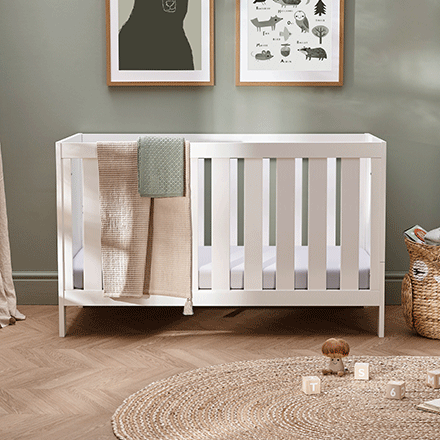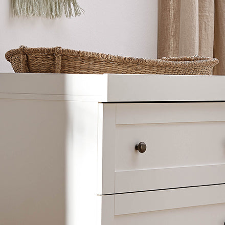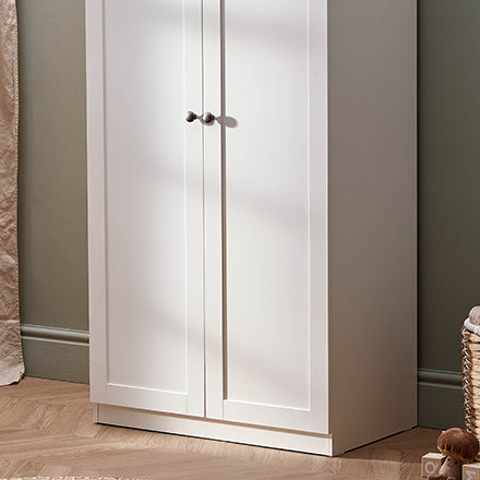 The Bromley nursery furniture collection offers the perfect canvas for creating your dream nursery. This set includes a cot bed which converts effortlessly to a toddler bed, dresser with removable changer top and spacious wardrobe and a TrueFit™ Eco Fibre mattress. This classic all-white set is finished with elegant cast pewter handles and comes with stacks of storage.