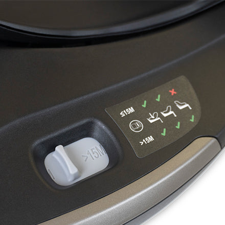 - AgeLock rotation switch ensures rear-facing travel for as long as possible
