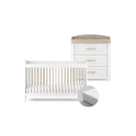 The Valencia nursery set is a fresh, neutral canvas for creating your dream nursery. Designed to grow with your child from newborn to toddler, the furniture set includes a cot to toddler bed and a spacious dresser with removable changer top for added longevity.