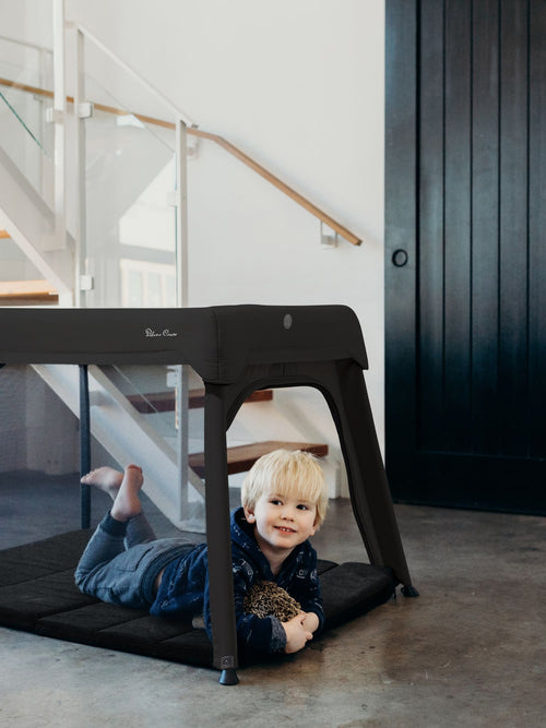 For nights away from home, our Slumber travel cot offers the perfect solution. A 3-in-1 co-sleeper, travel cot and playpen, Slumber has everything you need from newborn to toddler. With a deeply padded mattress, breathable mesh panels and silky soft cotton fitted sheets, Slumber ensures comfort from day one. Thanks to its waterproof base, Slumber is also ideal for playtime outdoors. Popping up and folding back down in seconds, Slumber is super easy to use and can be stored away in the included carry bag when not in use.