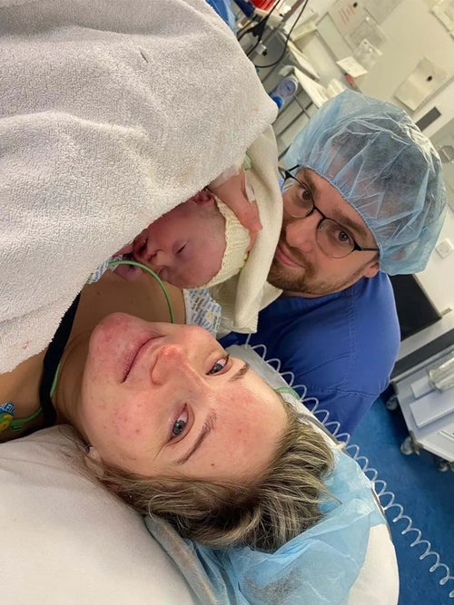 Everything from this point feels like a blur. My partner Jack was getting scrubs on, I was signing forms and we were soon in the theatre room. I was going to get an epidural in case of an emergency C-section and as soon as that took hold, I felt instant relief. We’d been awake almost 24 hours by this point.