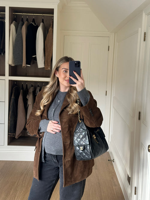 My go to look, especially this time of year, is a dark Jean and a baggy, chunky, knit jumper. It always looks well put together yet is extremely comfy and, in my life, comfort is key, especially during pregnancy!