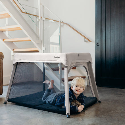 Popping up and folding down in seconds, Slumber is the game-changing travel cot that makes parenting easier – at home and away. Slumber doubles up as a travel cot and playpen, taking your little one from naptime to playtime in seconds.