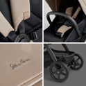 - Fully accessorised with coordinating changing bag, footmuff, cup holder and phone holder
